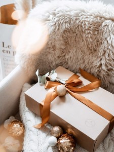 Dodatki i kolor wstążki zostaną dobrane do pory roku. Na zdjęciu swiateczne pakowanie.