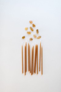 Zestaw ekologicznych, ręcznie robionych smukłych świeczek w rozmiarze standard.